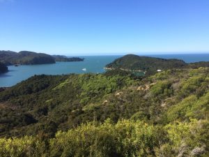Dienstag räumen wir die Awaroa Hut und nehmen den ziemlich langen High Tide-Pfad entlang der Küstenhänge zur Awaroa Lodge und der Anlegestelle bei der großen Sanddüne vor Awaroa. Unser vorbestelltes, kleines Wassertaxi holt uns pünktlich ab und liefert uns trotz ziemlich rauer See wohlbehalten in Marahau ab.