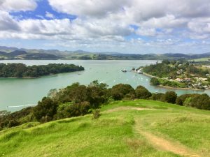 Mittwoch heißt es Abschied von Kerikeri zu nehmen. Unser Tagesprogramm sieht den Besuch des „Waitangi Treaty Grounds“ vor, des unumstritten geschichtsträchtigsten Platzes der neuseeländischen Geschichte. Leider scheitert der Besuch der geweihten Stätte an unserem schwäbischen Geiz, denn 100 NZ$ Eintritt sind wir dann doch nicht bereit zu zahlen, um das Museum, das „Treaty House“, das „Carved Meeting House“, den Flaggenmast und die „Ceremonial War Canoes“ bestaunen zu dürfen. Haben wir die Maoris abgezockt, dezimiert und als Menschen zweiter Klasse behandelt? Dafür schauen wir uns die herrliche Küstenlandschaft rund um Waitangi und Paihia an und fahren anschließend nach Opua, wo wir uns auf der Autofähre nach Russel übersetzen lassen. Die „Bay of Islands“ ist eine traumhafte Küsten-und Inselregion, die, zumal bei diesem herrlichen Sommerwetter, die Stimmung auf wunderbare Weise beflügelt. Diese Flügel werden uns aber sofort wieder gestutzt, denn wir müssen aufgrund einer Straßensperrung einen weiten Umweg in Kauf nehmen, um über Kawakawa dann doch noch in Whangarei, der einzigen größeren Stadt von Northland, anzukommen.