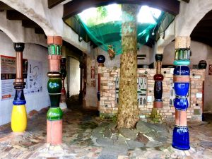 Neuseelands meist fotografierte Toilette in Kawakawa, von Friedensreich Hundertwasser, der von 1979 bis 2000 nahe Kawakawa arbeitete und lebte.