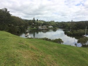 Vom  „Kororipo Pa“ am Kerikeri Basin hat man auch einen guten Blick auf den „Stone Store“ und das „Kemp House“.