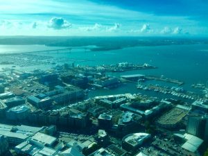 Auf unserem Spaziergang in‘s Zentrum der Stadt fällt uns beiden auf, dass die Straßen voll, laut und schmutzig sind. Von den Aussichtsplattformen des Skytowers sieht das dann anders aus und wir genießen beide den Rundblick über die Stadt zwischen Pazifik und Tasman Sea. Abends beim Dinner in der neuen Hafencity „Wynyard Quarter“, genießen wir auch das frische Lüftchen von See.