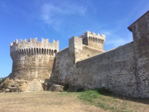Nach einer vergnüglichen Rast im Bergdörfchen Populonia Alta spazieren wir über ein ausgedehntes Grabungsfeld mit Mauerresten aus glanzvoller Zeit, in der die Etrusker das Eisenerz der Insel Elba erfolgreich verarbeiteten und vermarkteten. Weiter unten am Strand von Baratti erstreckt sich das bemerkenswerte Grabungsfeld Nekropolis mit vielen, noch begehbaren Grabstätten der Etrusker.