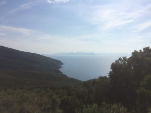 Populonia Alta vom Grabungsfeld der alten Etruskersiedlung aus gesehen.