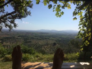 Erneut kündigt sich ein schöner, heißer Spätsommertag an. Beste Gelegenheit, nochmal die Beine hochzulegen, die Seele baumeln zu lassen, und die reizvolle Gegend und den immer wieder sensationellen Blick auf die Weite der Maremma zu genießen.