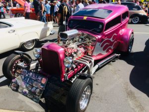 Natürlich wählen wir auf der Strecke von Rotorua nach Coromandel Town, auf der gleichnamigen Halbinsel gelegen, nicht den schnellen, sondern den schönen Umweg über Tauranga und Waihi Beach, auch „Paradise Coast“ genannt. Immer wieder kommen wir an Obstplantagen, vor allem mit Kiwi, und an Rinderfarmen vorbei. Kurz vor Whangamata fällt uns eine ungewöhnlich hohe Oldtimer-Dichte auf, und im Ort selbst stoßen wir schnell auf des Rätsels Lösung. Seit Mittwoch und noch bis Sonntag findet in Whangamata das alljährliche „Beach Hop-Festival“ mit viel Rock‘n Roll, alten aufgemotzten Autos, Dragstern und fetten Zweirädern statt. Die ganze Innenstadt ist völlig aus dem Häuschen und daher auch für den üblichen Verkehr gesperrt.
