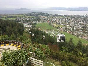 Von der Bergstation der Gondola hat man auch bei bedecktem Himmel eine gute Sicht über Rotorua und den See.
