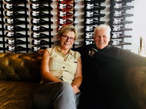 Theres mit Johnny, unserem freundlichen Gastgeber von der „Volcanic Hills Winery“.