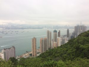 …und am anderen Morgen sieht man auch den Hafen, Kowloon und die vorgelagerten Inseln. Vorausgesetzt das Wetter spielt mit.