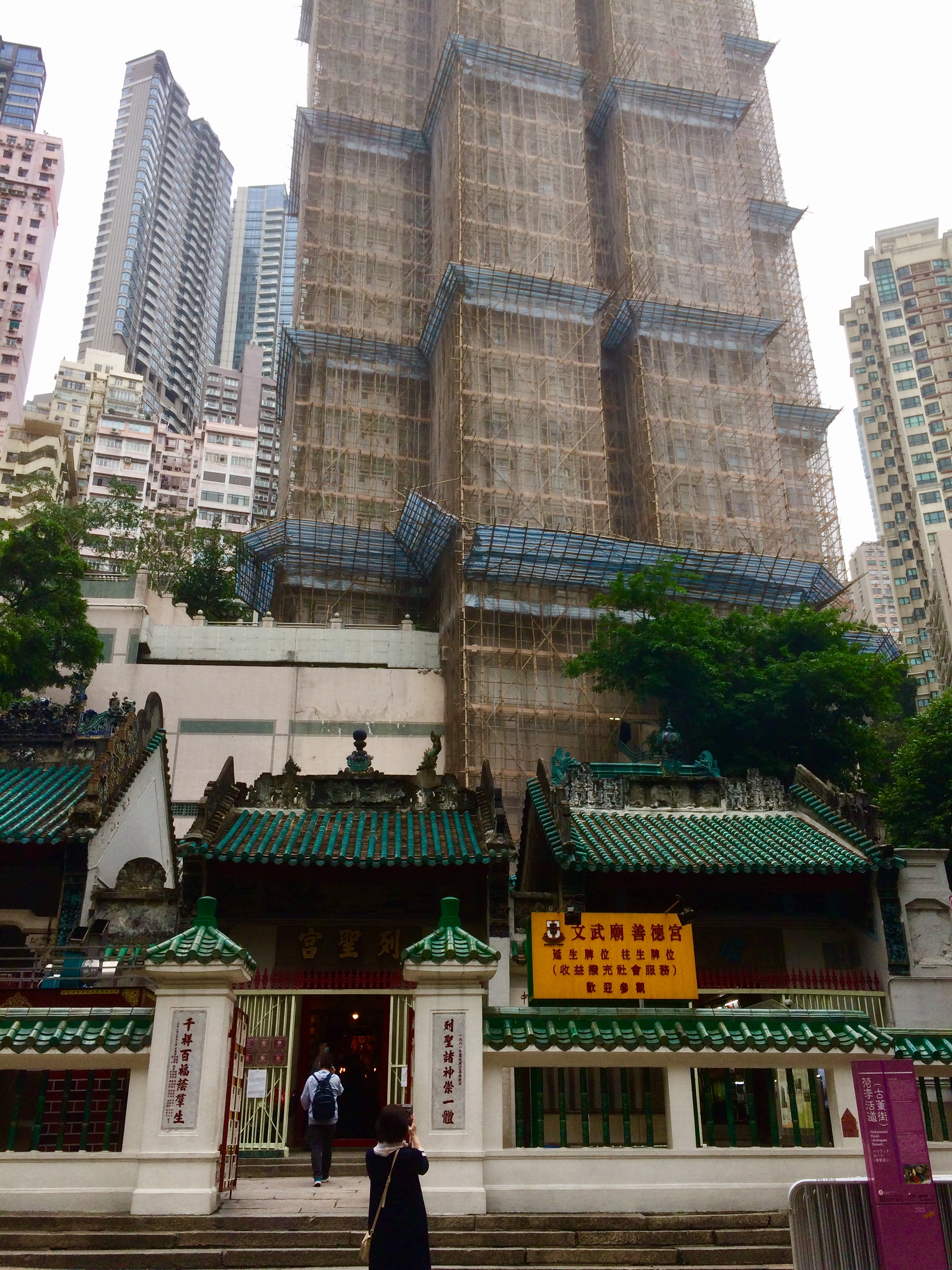 Der berühmte taoistische „Man Mo-Temple“ in der Hollywood Road zieht Gläubige wie Touristen magisch an. Die vom Rauch und Duft der zahllosen Räucherstäbchen geschwängerte Luft ist eine Herausforderung für Augen und Atemorgane.