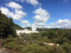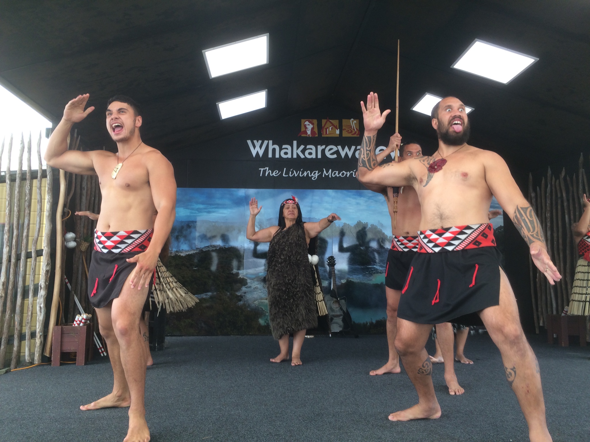 Erst in Rotorua ist uns eigentlich bewußt geworden, wie sehr die Maoris, ihre Geschichte und Kultur mit dem Leben der Siedler Neuseelands und ihrer Bewohner verknüpft sind. Die Vorstellung im Tamaki Maori Village war da ja ganz nett, aber noch authentischer erfahren wir mehr über das Leben der ersten Bewohner Neuseelands durch den heutigen Besuch in „Whakarewarewa Village“, einem lebendigen Maori-Dorf am Rande Rotoruas, in dem die Bewohner noch heute leben wie ihre Vorfahren, die sich schon damals in dieser vermeintlich lebensfeindlichen Umgebung eingerichtet haben. Hier wird das Hangi noch in tatsächlich heißen Erdlöchern gegart, Kartoffeln, Mais und Möhren im Thermalpool gekocht. Weil die Dorfbewohner die Vorzüge des großen, heißen Thermalfeldes nutzen, müssen sie sich auch mit den Widrigkeiten arrangieren, d.h. Wege können unpassierbar, Häuser unbewohnbar werden.