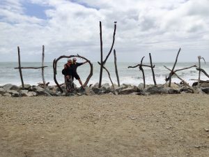 Altes Treibholz am Strand von Hokitika, West Coast.