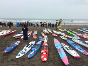 Richtige Surfer, hier am Strand von Gisborne, schreckt auch Regenwetter nicht.