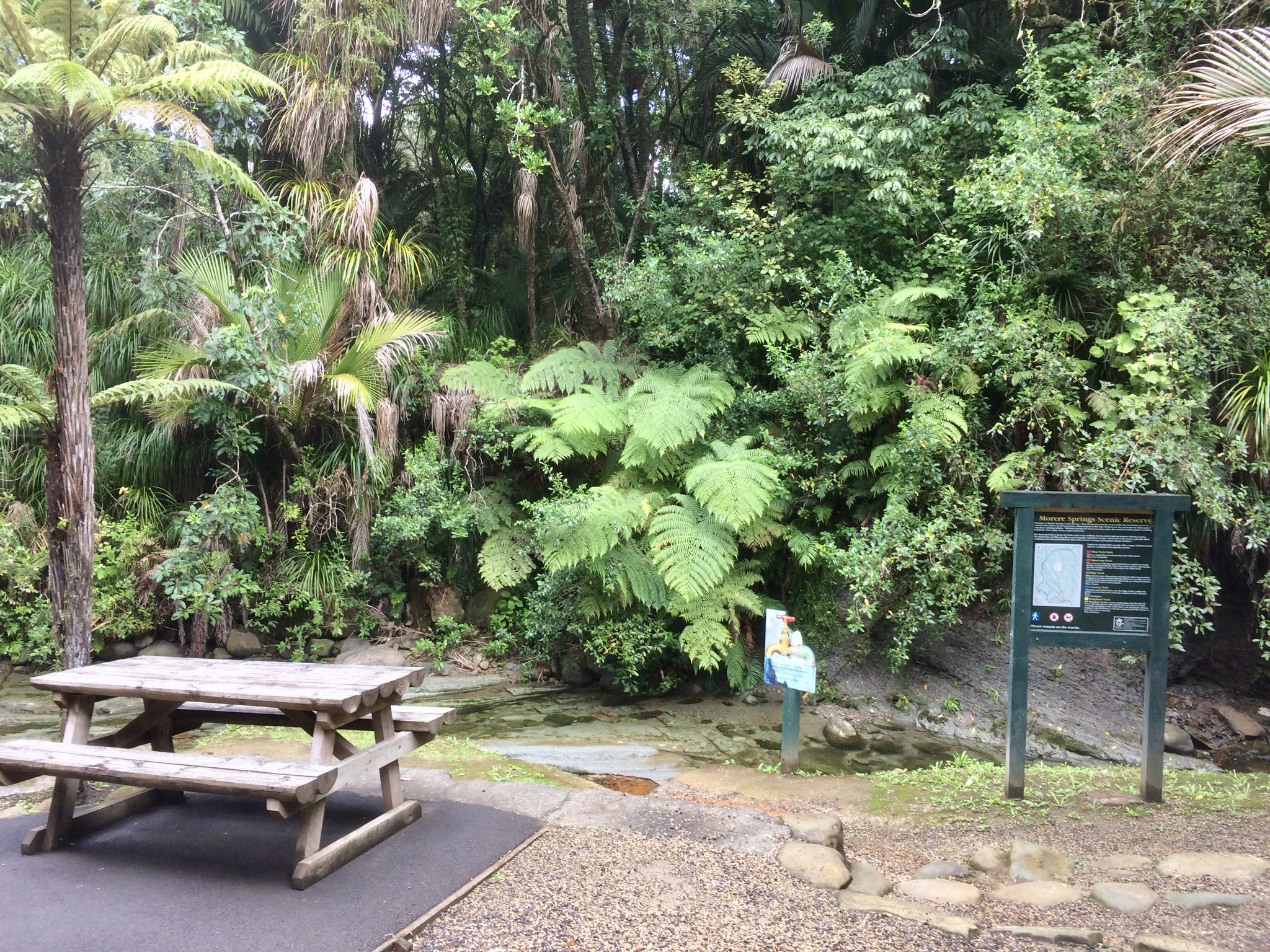 Was eignet sich da an einem kühlen, wolkenverhangenen Sonntag besser, als der Besuch der „Morere Hotsprings“? Wir fahren also die 58 Kilometer (Richtung Napier) zurück und verbringen ein paar sehr entspannte Stunden im warmen, mineralreichen Thermalwasser der heißen Quellen im Busch.