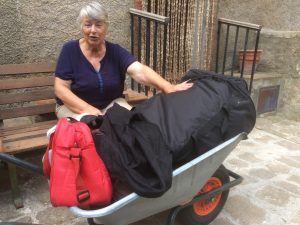 Edeltraud wartet schon vor ihren gepackten Taschen, bereit für die Rückreise.