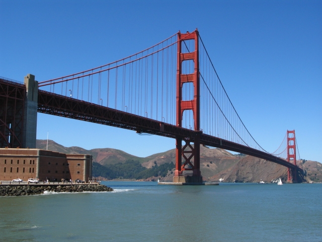 Unsere Zelte in Santa Rosa sind schnell abgebrochen (Dienstag, 24.08.2010). Auf dem Highway 101 geht es vorbei an Petaluma, Novato, San Rafael und Sausalito Richtung San Francisco. Hinter einer Straßenbiegung taucht plötzlich die Golden Gate Bridge auf. Erstaunlich nah ist auch Alcatraz, die berühmt-berüchtigte Häftlingsinsel in der San Francisco Bay. Mit Hilfe eines detaillierten Straßenplans dirigiert mich Theres zielsicher durch das Gewirr der Straßen. Mehrfach geht es heftig bergan, dann wieder steil bergab. Die Kühlerhaube unseres Camaros steigt gen Himmel und stürzt sich dann plötzlich in die Tiefe. Wer zu schnell unterwegs ist kann leicht dem Bugspoiler Ade sagen. Noch vor Mittag parken wir wohlbehalten vor unserem Hotel Union Square in der Powell Street 114 (www.personalityhotels.com) und deponieren erst mal unser Gepäck beim Consierge. Da das Zimmer noch nicht beziehbar ist, nutzen wir die Gunst der Stunde und die letzten Galonen Sprit im Tank und machen eine erste Stadtrundfahrt. Am Fort Mason geht unsere Fahrt entlang des Marina Boulevard und West Harbor. Rechts grüßt die San Francisco Bay, links eine lange Reihe sehr ansehnlicher Bürgervillen. Man zeigt, was man hat und läßt sich bis in die edel ausgestatteten Wohnzimmer blicken. Über das Presidio-Gelände, Teil der ausgedehnten Golden Gate National Recreation Area erreichen wir Fort Point am Fuß der Golden Gate Bridge. Weiter geht es durch den Lincoln Park, durch einen im Park gelegenen Golfplatz, vorbei am Cliff House zum Golden Gate Park, der grünen Lunge der Stadt. Auf und ab geht es durch das Geviert der Straßen bis wir wieder den Highway 101 Richtung San Jose erreichen. Am SF Airport ist die Rückgabe unseres Fahrzeugs schnell erledigt und wir fahren mit der BART (Bay Area Rapid Transit), einer Art S-Bahn, in rund 40 Minuten bis fast vor unser Hotel. Nach dem Bezug unseres kleinen aber sehr angenehmen Zimmers und einer erfrischenden Dusche unter der Regenwaldbrause erkunden wir auch die nähere Umgebung des belebten Union Square, essen in einem nahegelegenen Lokal und beenden den Tag mit einem Schaufensterbummel bei unseren neuen Nachbarn Chanel, Hermes, Prada, H&M, Burberry und Macy’s.