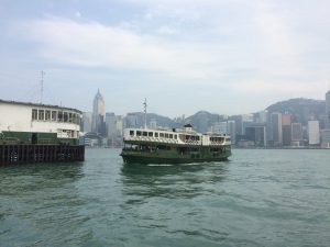 Die grün/weißen Boote der „Star Ferry Line“ sind das Wahrzeichen Hongkongs.