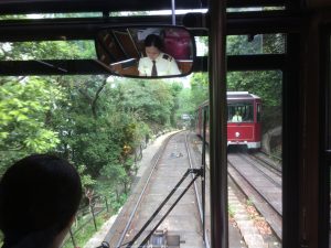 Die alte Standseilbahn transportiert Menschenmassen zum „Peak“ und wieder zurück.