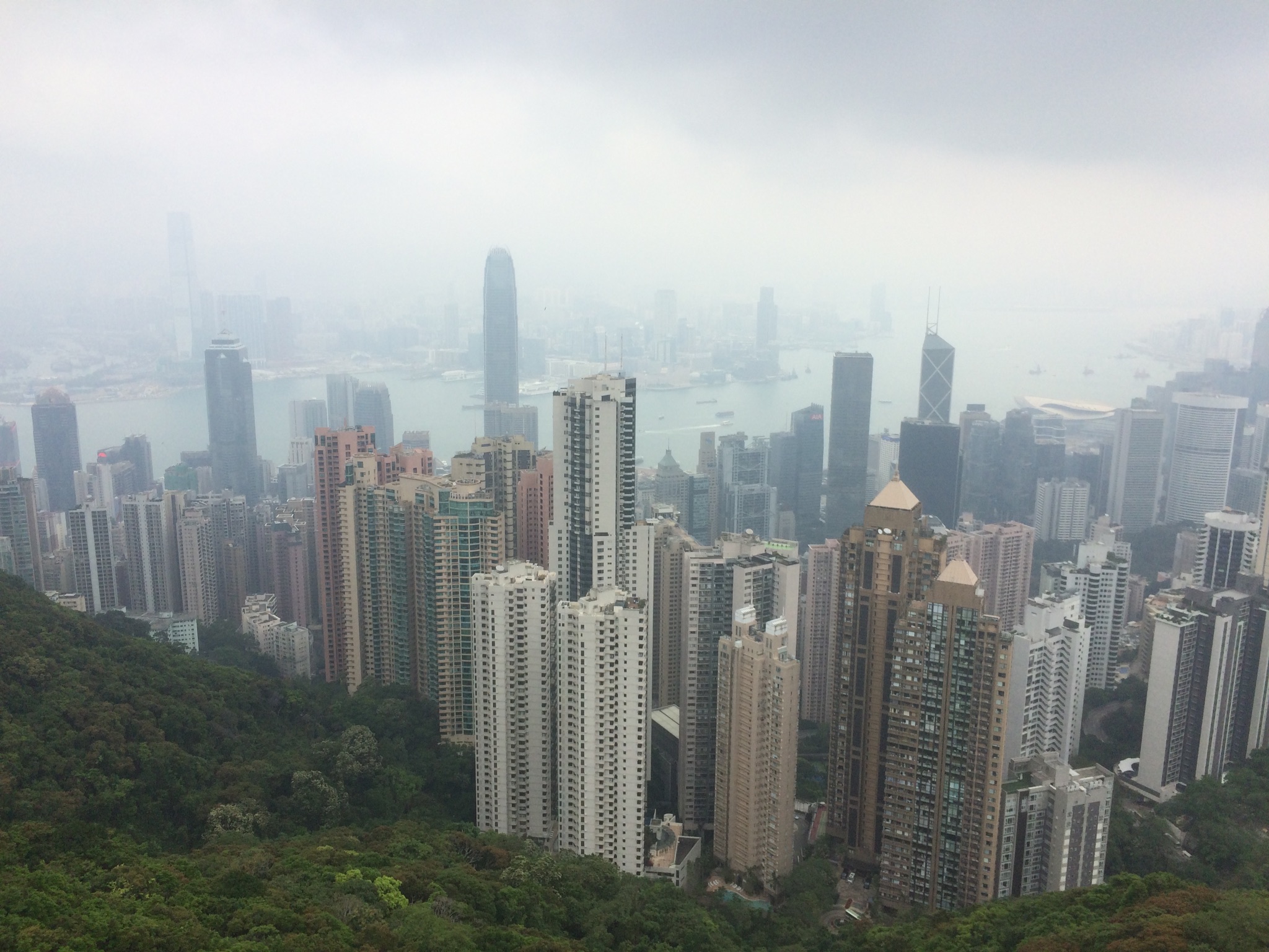 Von oben hat man einen unglaublichen Blick über einen Großteil von Hong Kong Island. Bei Nebel wirkt die Stadt seltsam entrückt.