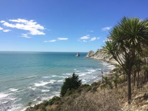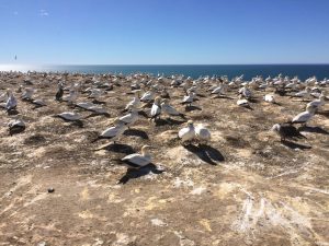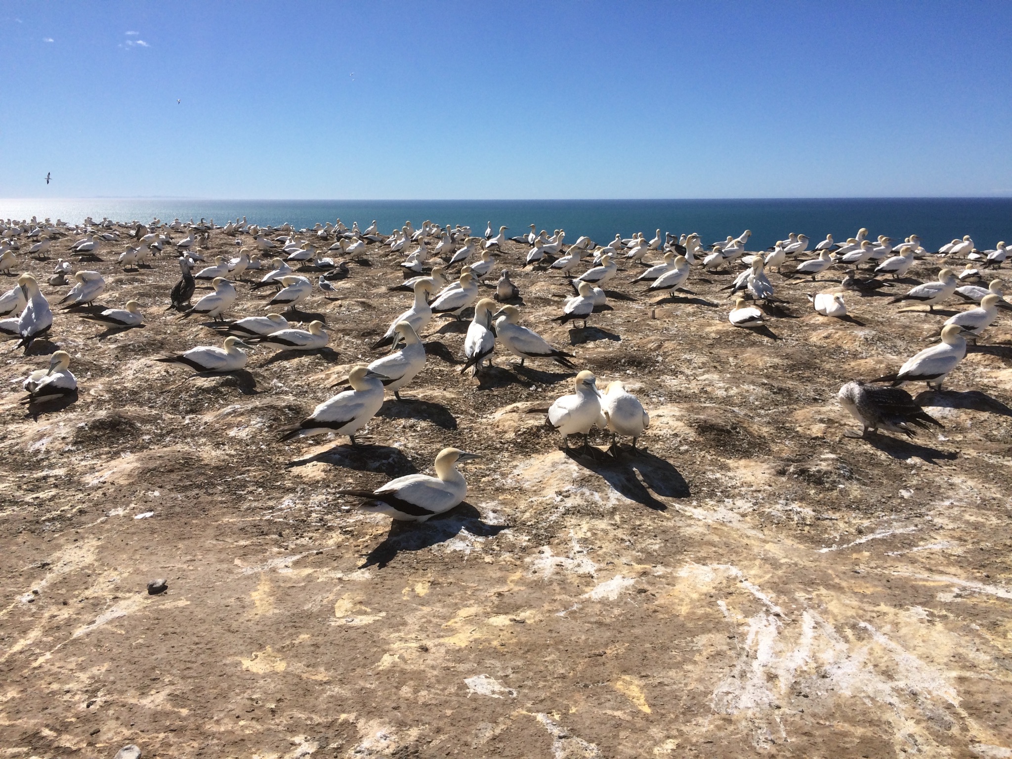 Die letzten zwei Kilometer zum „Cape Kidnapper“ und bis zum eigentlichen Ziel unseres Abenteuers, der größten „Gannet“-Kolonie der Erde, legen wir zu Fuß zurück. Wir haben noch Glück, denn die Jungen sind schon prächtig herangewachsen und werden wohl bald mit ihren Eltern die lange Reise nach Australien antreten. Nach gut vier Stunden ist unser Ausflug über Stein und durch anrollende Pazifikwellen zu Ende. Für uns geht die Fahrt weiter. Erneut auf der SH 2 an Napier vorbei, immer wieder die Hawkes Bay im Blick, vorbei an Wairoa und über kurvenreiche, hügelige Straßen bis nach Gisborne an der „Poverty Bay“, dem Ziel des heutigen Tages.