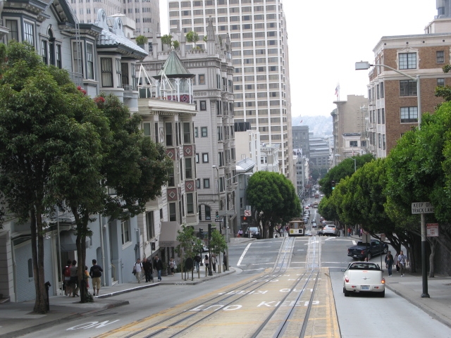 Unser letzter (vollständiger) Tag in San Francisco ist angebrochen (Freitag, 27.08.2010). Natürlich mit dem Cable Car geht es zum Cable Car Barn Museum in der 1201 Mason Street. Hier schlägt auch heute wieder das Herz aller vier Cable Car-Linien. Spätestens jetzt wissen wir, how it works. Von dort geht es gleich weiter ins Bankenviertel. Im Wells Fargo History Museum sind viele Exponate aus der Zeit des Goldrushs und des Pony Express ausgestellt. Highlight ist eine originale Wells Fargo-Postkutsche. Nur wenige Straßen jenseits der Market-Street (655 Mission Street) liegt das Cartoon Art Museum mit Original-Exponaten von Mort Walker (Beetle Bailey), Nina Paley und unzähligen Größen des goldenen Comic-Zeitalters. Fantastisch, mit wieviel Fantasie und Präzision hier gezeichnet und gelettert wurde. Schnell, naja, etwas Zeit muss man schon aufbringen, fahren wir mit dem Cable Car Richtung Fisherman’s Wharf, dort, wo die Lombard Street dermaßen steil ist, dass sie nur in engen Serpentinen talwärts gen Leavenworth Street geht. Trauben von Touristen haben das selbe Ziel. Nun aber heißt es fix zurück ins Hotel und umziehen. Unser Abschiedsessen im „Boulevard“, Mission-/Ecke Steuart Street, ein weiteres tolles Geburtstagsgeschenk unserer Kinder Raoul, Bernhard und Aline, steht an. Um es kurz zu machen: es ist das leckerste, angenehmste und teuerste Essen, das wir während unserer gesamten USA-Reise genossen haben.