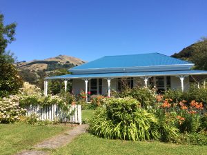 Das „Halfmoon Cottage“, von Cornelis und Margo Vullers, Barrys Bay an der A75 nach Akaroa, ist ein bezauberndes Paradies.