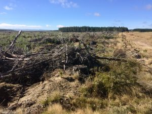 Tatsächlich hatte es die ganz letzte Nacht geregnet, doch der Morgen begrüßt uns erneut mit Sonnenschein und blauem Himmel. Von Taupo, das wir als sehr touristisch geprägte, schnell wachsende Siedlung in Erinnerung behalten, geht unsere Fahrt entlang der Ahimanawa Range Richtung Napier. Auf dem ausgedehnten Plateau wurden Quadratkilometer große Flächen gerodet und mit schnellwachsenden Nadelbäumen bepflanzt. Auf weiteren, riesigen Flächen rotten reihenweise kleinere Stämme und Reisig, dazwischen wachsen bereits neue Pflanzen heran. Immer wieder begegnen uns entladene oder mit Stämmen schwer beladene Trucks. Hier wird Holz in großem Maßstab angebaut und geerntet um, vermutlich, überwiegend nach Asien exportiert zu werden. Derlei Monokulturen waren uns auch auf der Südinsel immer wieder begegnet. Aber dermaßen umfangreich begegnet uns diese Waldwirtschaft erst hier.