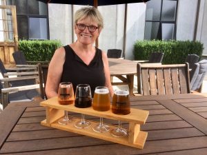 Unser Tasting-Tray im „Abbey Estate“, Winery & Brewery, v.l.n.r.: Cider, Bishop Merlot, Belgian Blonde und Pilsner. Cheers!