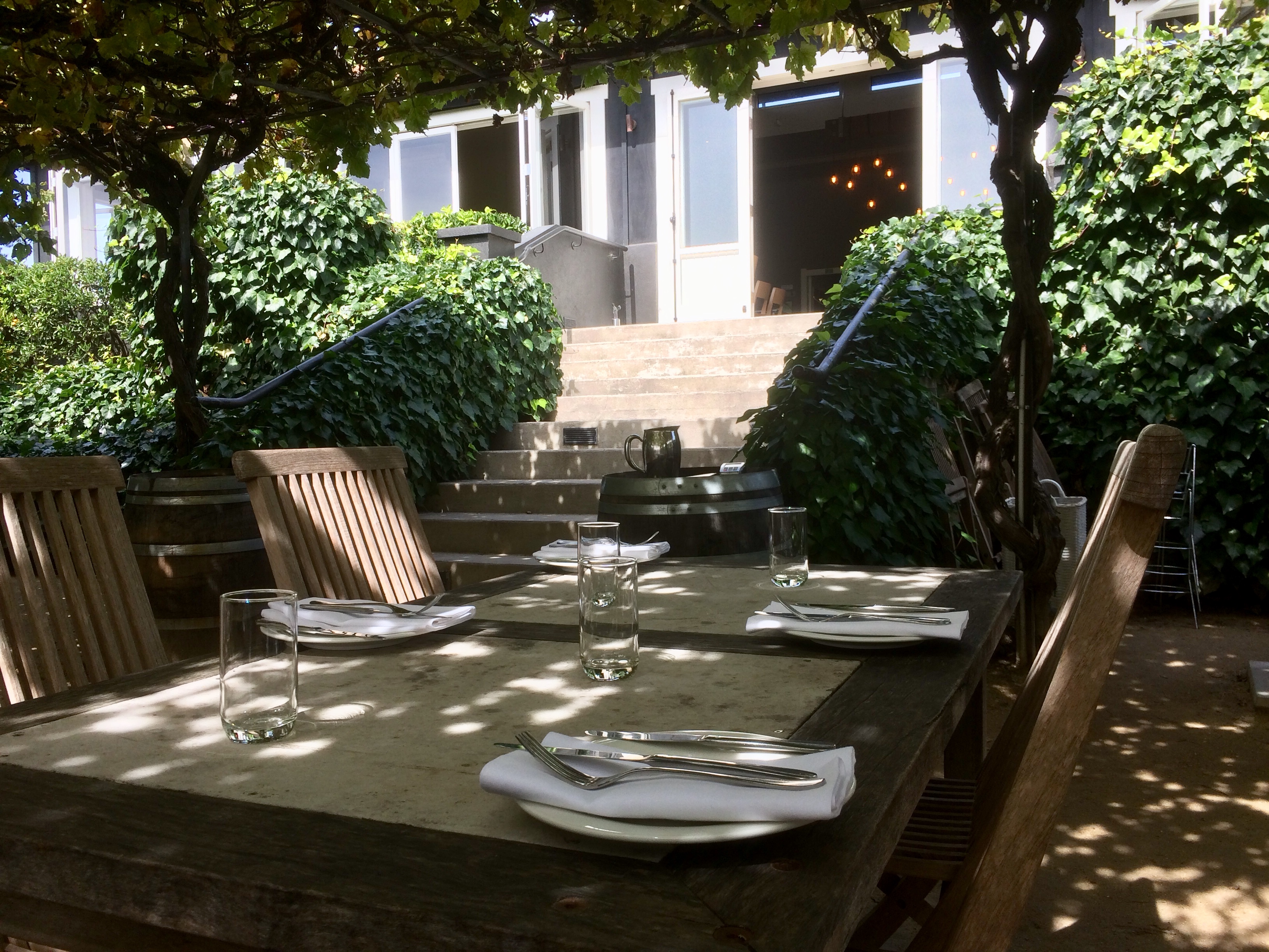 Im von Weinreben beschatteten Gastgarten von „Black Barn Vineyards“ kann man lecker essen und bestens entspannen.
